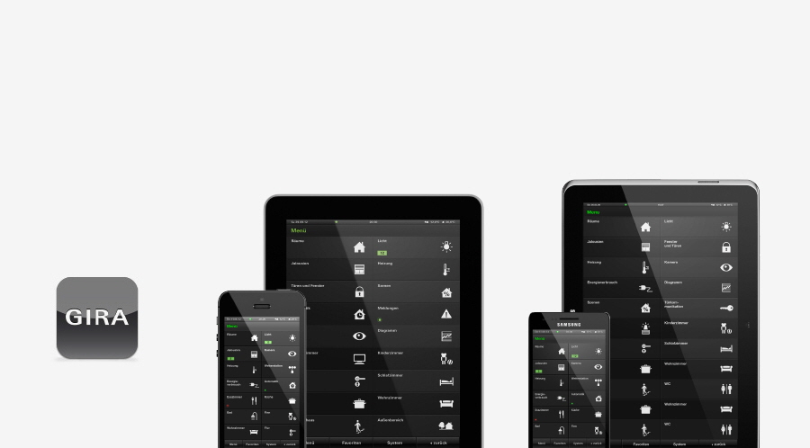Lauffähig auf Applegeräten und Gira Touchpanels - die Darstellung variert je nach Gerät.